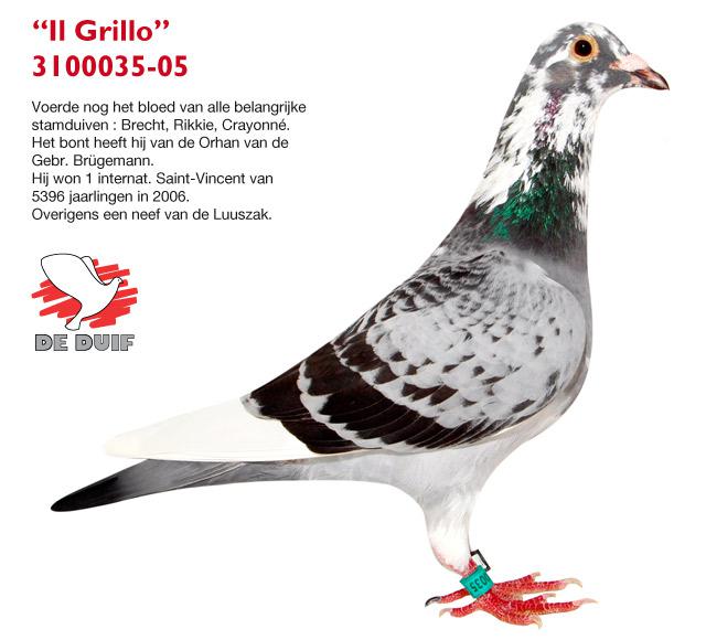 Il Grillo was een kleinzoon van de Crayonné en dus een neef van de Luuszak. Zijn moeder was namelijk een dochter van de Crayonné gepaard aan een duifje dat op het hok van Hilde in 1999 1 nat. La Souterraine vloog. Daar komen we nog uitvoerig op terug.