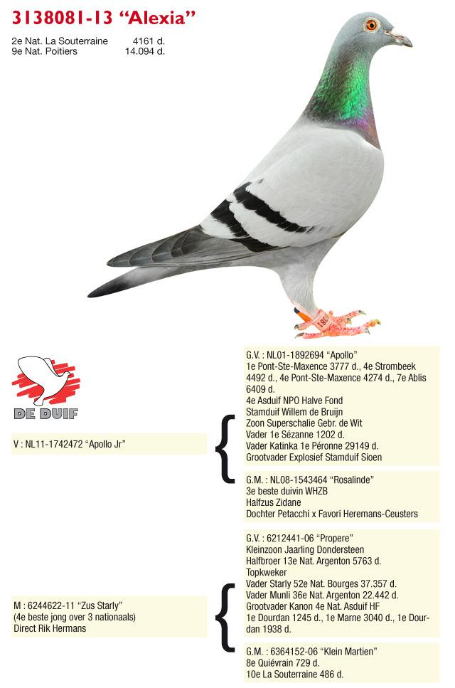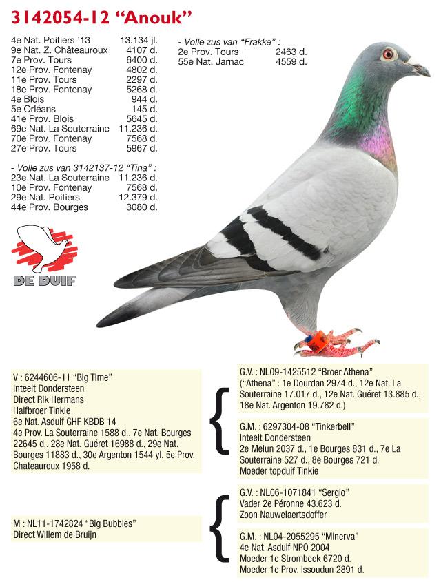 Zijn broer 3026080-10 won 7 nat. van 6217 en 10 internat. Bordeaux van 11444 duiven.
