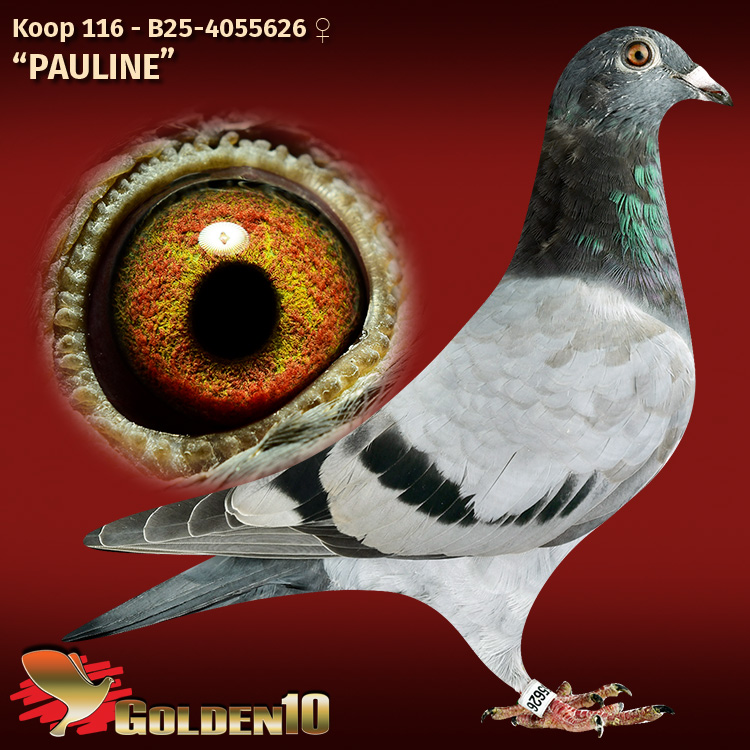 Zoon van “Fugitive” (zoon “Grauzone” x “Carmya”) x “Pliva” (één van de huidige topkweeksters en moeder o.a. “Primus Mattheo” 1e Nat. Bourges 21.075 d. / snelste 39.804 d.).