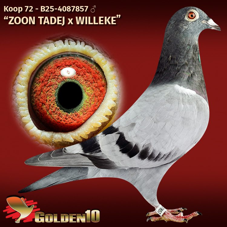 Geboren uit samenkweek met Etienne Meirlaen uit “Zoon Monar” (uit 1e Internat. Narbonne 12.605 d. x 1e Nat. Asduif grote fond KBDB) x “Dochter Jonge Witbuik”.