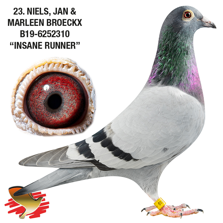 Zus van “Mirthe” (1e Asduif Fondclub Antwerpen met 1e Salbris 314 d. / 5e Prov. 1337 d., 2e Arlon 348 d., 263e Nat. Bourges 31.824 d., 146e Nat. Argenton 20.844 d., 18e Nat. Gueret 12.586 d., 25e Prov. Chateauroux 2179 d., 35e Prov. Montlucon 2152 d. etc.).
