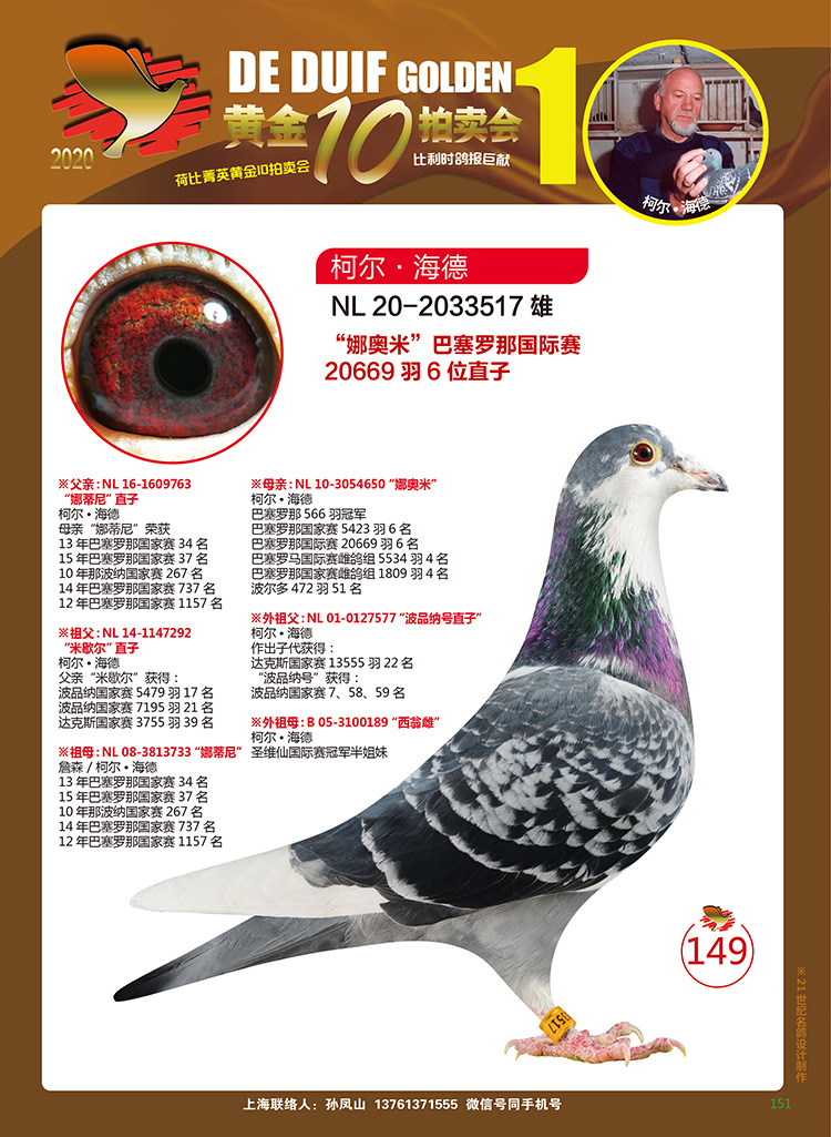 Zoon van stamvader “Don Michel” x dochter “Boemerang” (1e Nat. Asduif grote fond NPO 2010 en Olympiadeduif Marathon Poznan 2011)