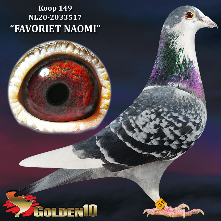 Is de huidige stammoeder van Fran Jansen en ook grootmoeder van o.a. “Bart”, 2e Nat. Barcelona 4477 d. 2020 / 3e Internat. 12.315 d.) en 17-516 (5e Nat. Barcelona 4477 d. / 7e Internat. 12.315 d. bij Gebr. Maas & Zn).