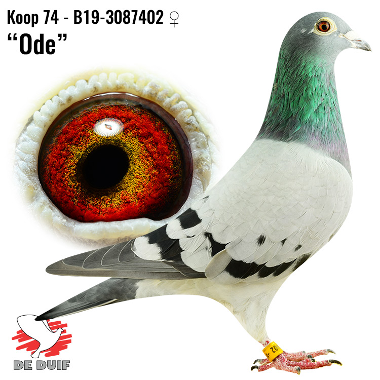 G.V.: NL14-1462317 “Beauty”. Direct Gerard Koopman, uit de topkoppeling van “Hebberecht 533” (zoon “Champion”, 2e NAT Asduif fond KBDB ’05) x “Cantharel” (dochter fameuze “Harry” Jan Hooymans).